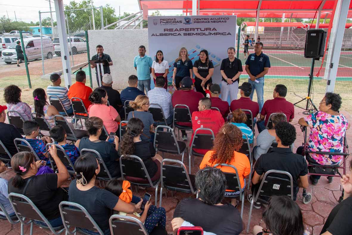 Piedras Negras, Coah. [ ABC COAHUILA ] – 30 de junio de 2025 – Con el firme compromiso de ofrecer espacios públicos funcionales y seguros, el gobierno municipal llevó a cabo la reapertura de la alberca semiolímpica en la Unidad Deportiva “Víctor M. Rueda”, ubicada en el sector Malvinas, un recinto que ha sido renovado para brindar momentos de recreación, salud y convivencia a las familias nigropetenses.