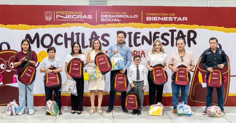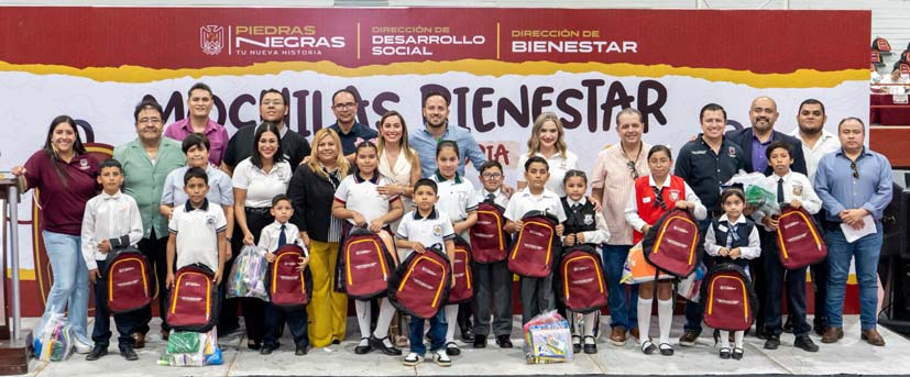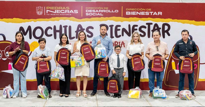 El Gobierno Municipal de Piedras Negras llevó a cabo la entrega de 1,200 mochilas del programa “Mochila Bienestar, Tu Nueva Historia”, las cuales incluyen útiles escolares de acuerdo con el listado proporcionado por los maestros. Estos apoyos están dirigidos a niñas y niños de nivel primaria seleccionados por los propios planteles educativos, con el objetivo de fortalecer la educación y contribuir al bienestar de estudiantes en situación económica vulnerable.