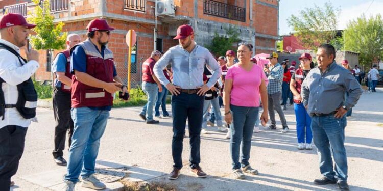 COMO PARTE de sus recorridos permanentes por distintos sectores de la ciudad, el alcalde Jacobo Rodríguez visitó la colonia Tierra y Esperanza, escuchando personalmente las peticiones, necesidades y planteamientos de los vecinos, acompañado por su gabinete, directores de área y personal municipal.