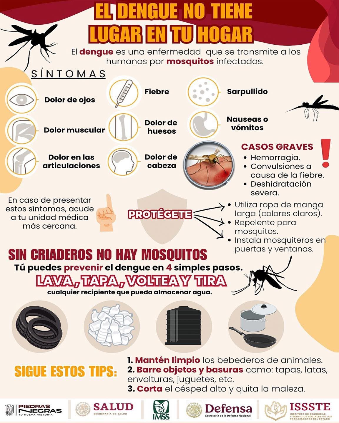 Las autoridades municipales enfatizan que «La prevención está en tus manos». La colaboración de cada familia es vital para proteger la salud de todos y evitar brotes de dengue en Piedras Negras. Actuar hoy es garantizar un entorno más seguro y saludable para el futuro de nuestra comunidad.