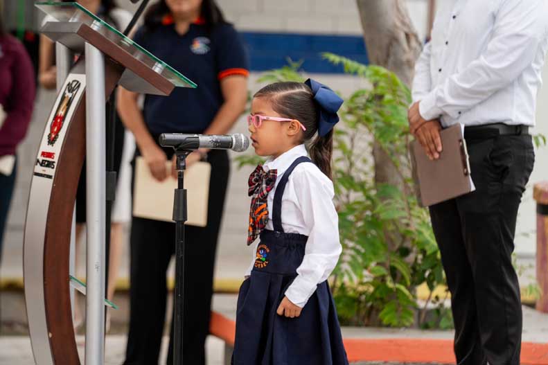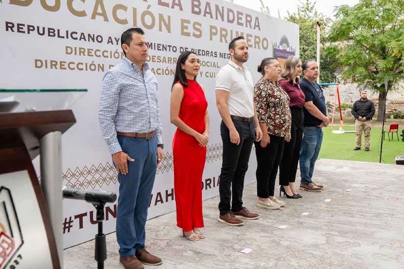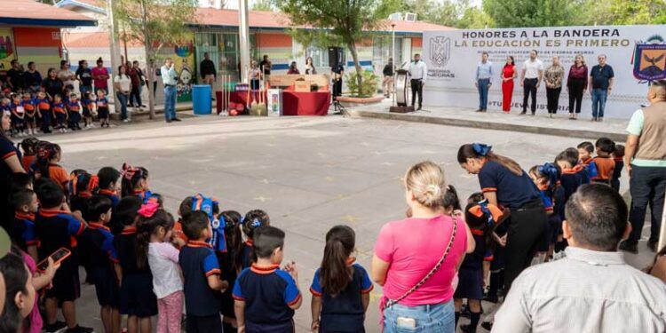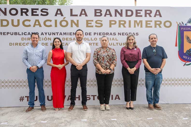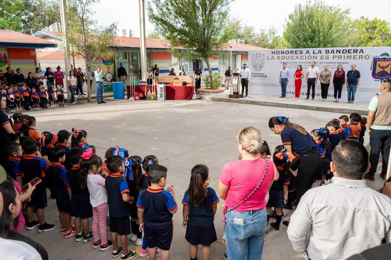 Durante su mensaje, el alcalde instó a los niños y niñas a vivir con valores, con respeto y con amor a su tierra, recordando que las ceremonias cívicas fortalecen el sentido de pertenencia y que en ellos reside la esperanza de que México y Piedras Negras continúen siendo lugares de paz, progreso y oportunidades. Asimismo, reconoció a los padres de familia y a las maestras por su esfuerzo diario, destacando que su labor forma estudiantes con una educación sólida que contribuye directamente al futuro de la comunidad, la escuela y sus compañeros.