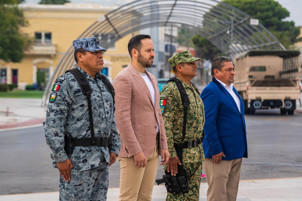 Durante el acto cívico, el presidente municipal estuvo acompañado por autoridades militares, entre ellas el Inspector General Arturo Hernández Cedeño, comandante del 33/o Batallón de la Guardia Nacional con sede en Piedras Negras, y el teniente coronel Donaciano Zaragoza Hernández, quienes participaron en el protocolo oficial, reforzando el respeto y la solemnidad de la ceremonia. Asimismo, se contó con la presencia de alumnos del CECyTEC, institución que se sumó a este evento con el propósito de fomentar en la juventud el sentido de identidad, civismo y respeto por los símbolos patrios.