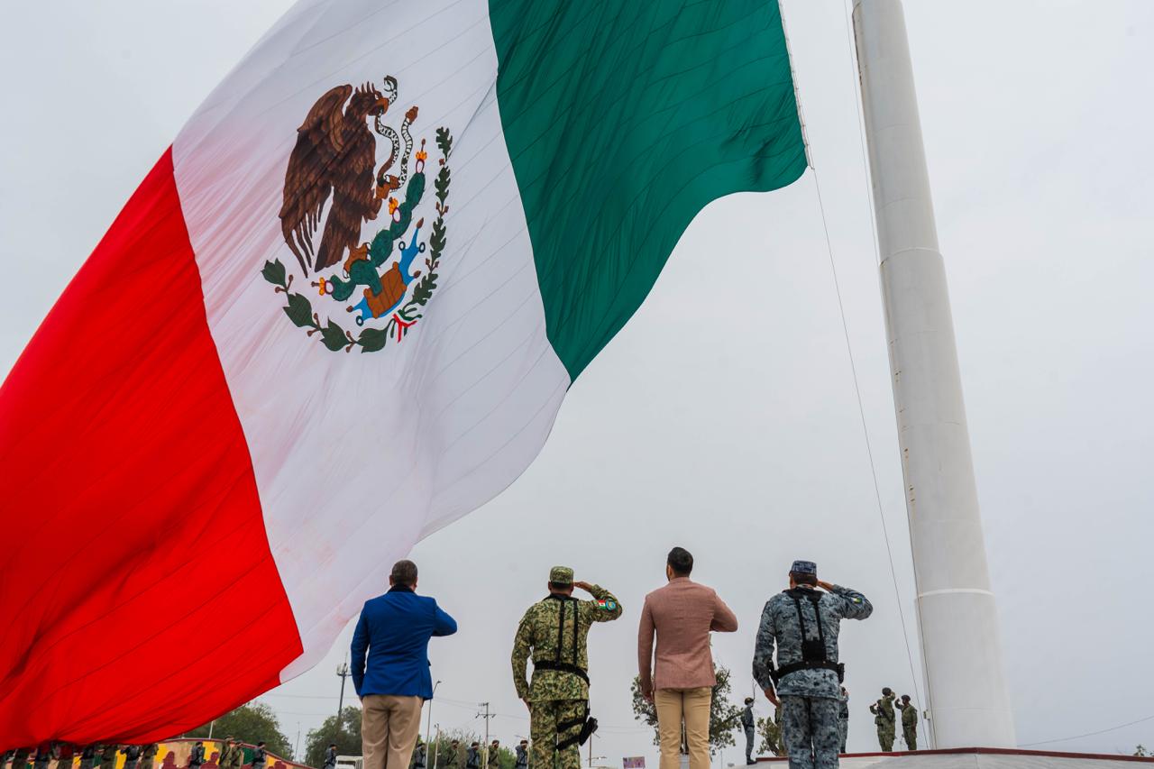 El alcalde Jacobo Rodríguez encabezó este miércoles la ceremonia de Izamiento de la Bandera realizada en el Asta Monumental de la Gran Plaza, como parte de las actividades oficiales para conmemorar un aniversario más de la Revolución Mexicana, uno de los movimientos históricos más importantes para la vida democrática y social del país.