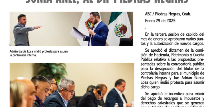 Se aprobó el dictamen de la comisión de Hacienda, Patrimonio y Cuenta Pública relativo a las propuestas presentadas sobre la convocatoria pública para la designación del titular de la controlaría interna para el municipio de Piedras Negras y fue Adrián García Losa quien rindió protesta para asumir dicho cargo.