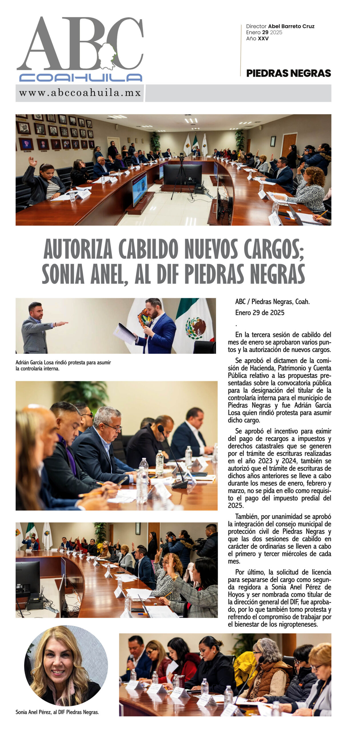 También, por unanimidad se aprobó la integración del consejo municipal de protección civil de Piedras Negras y que las dos sesiones de cabildo en carácter de ordinarias se lleven a cabo el primero y tercer miércoles de cada mes.