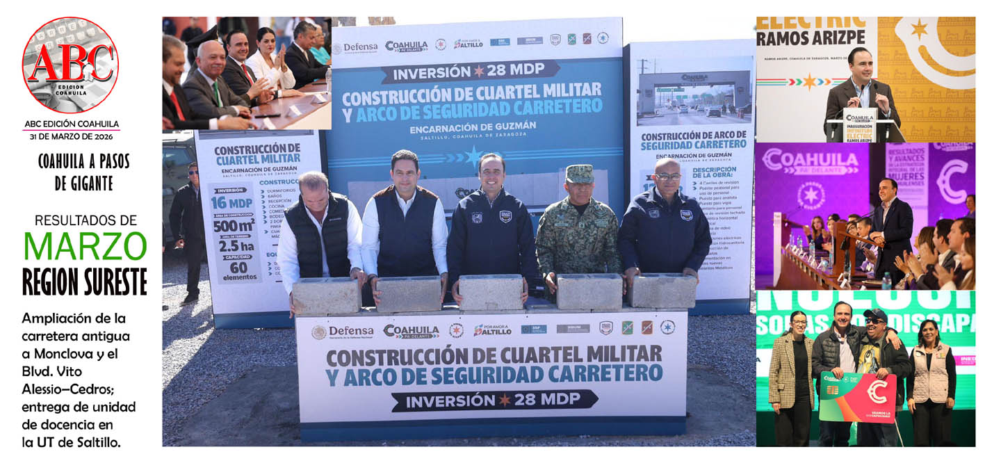 Al cierre de marzo, el gobernador Manolo Jiménez Salinas calificó el mes como un periodo de «resultados y compromisos cumplidos», destacando una intensa agenda de obras y programas en las cinco regiones del estado.