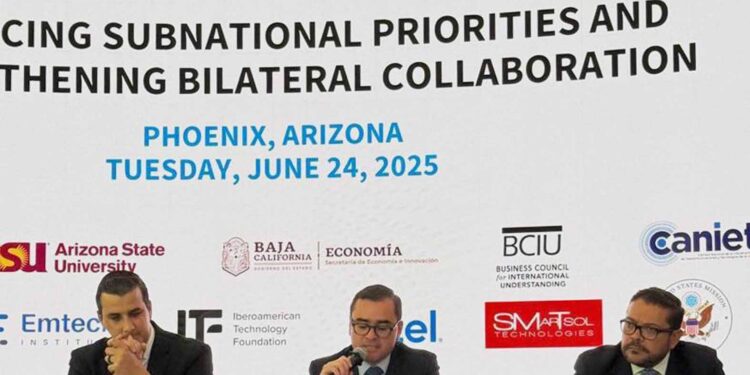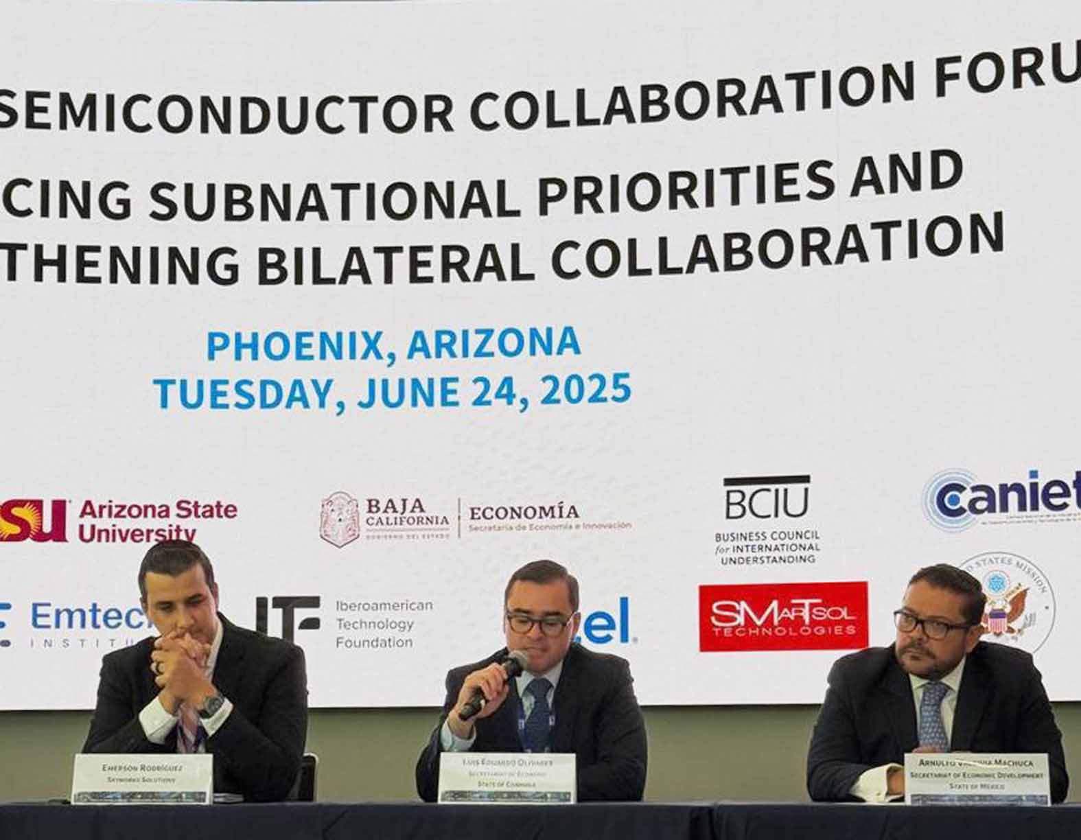 El foro reunió a destacados líderes del sector público y privado de ambos países, incluyendo representantes de empresas tecnológicas, organismos de inversión, así como autoridades gubernamentales de Estados Unidos y México, con el propósito de fortalecer la colaboración estratégica para impulsar la industria de semiconductores en la región.