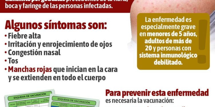 Las autoridades de salud reiteraron las recomendaciones en caso de sospecha o confirmación de sarampión: aislar al paciente para evitar contagios, y estar atentos a síntomas como fiebre alta, enrojecimiento ocular, congestión nasal, tos y aparición de manchas rojas que inician en el rostro y se extienden al resto del cuerpo, recordando que ante cualquier sospecha acudan a las clínicas de “Tu Salud, Tu Nueva Historia”, donde podrán ser atendidos de forma inmediata.