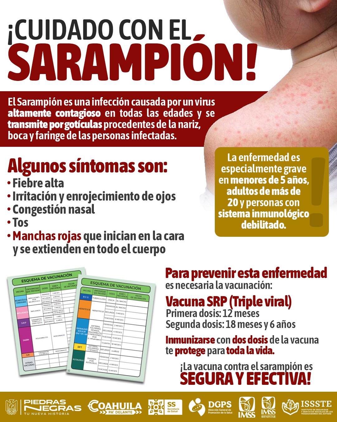 Piedras Negras, Coah. – [ABC COAHUILA] – 17 de julio de 2025 – Una persona detenida que fue valorada por presentar lesiones cutáneas fue descartada clínicamente como caso de sarampión, informó Ricardo Hugo Aguilar, director interino de Salud Municipal.