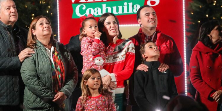 El gobernador Manolo Jiménez Salinas, su esposa Paola Rodríguez López y sus hijos, dieron inicio a las celebraciones de la temporada navideña al encender VillaMagia Coahuila 2024, en Saltillo, con el objetivo de llevar un mensaje de unión familiar en esta época y resaltar las tradiciones mexicanas.