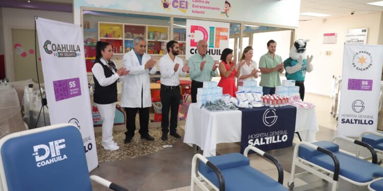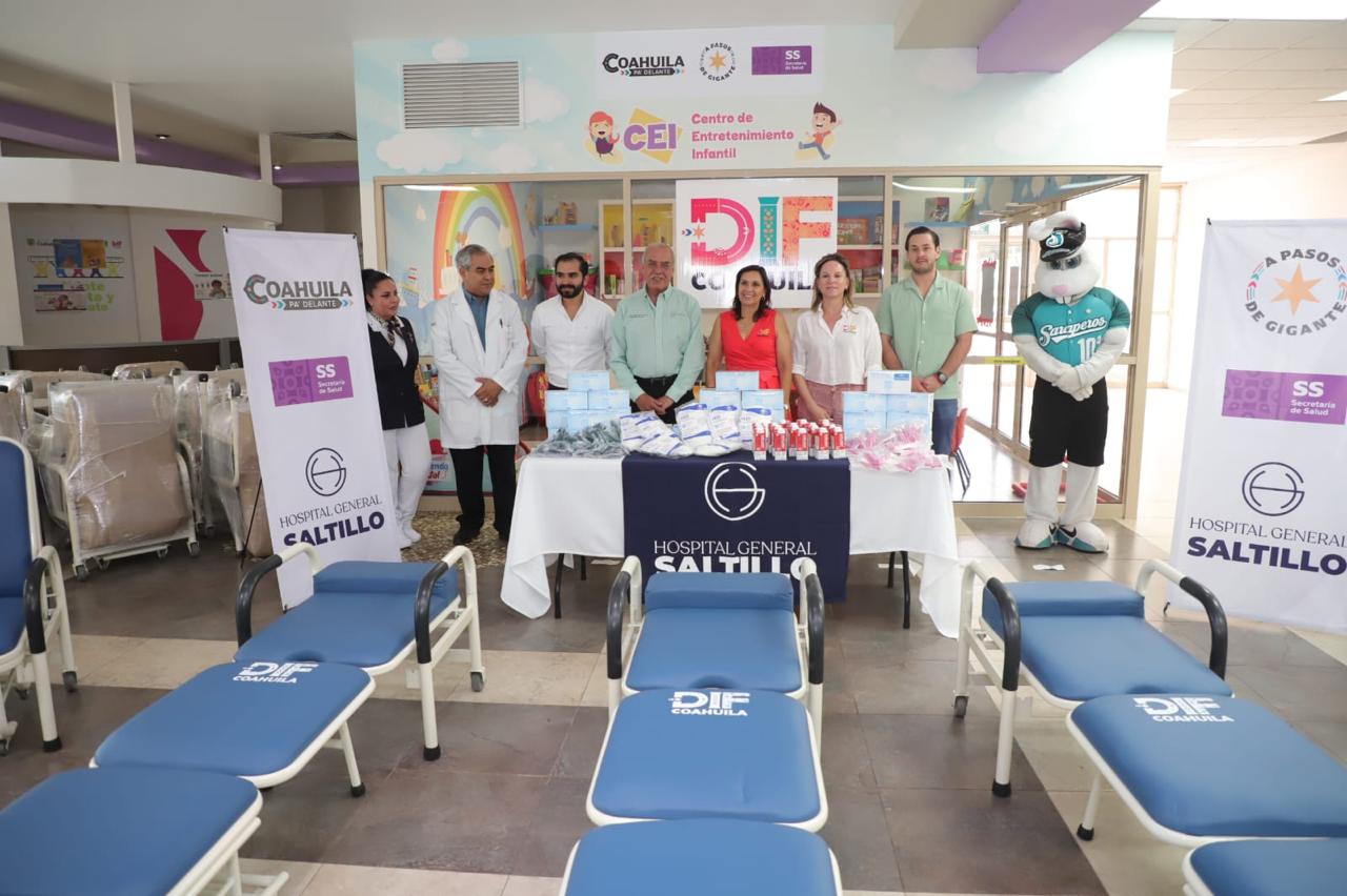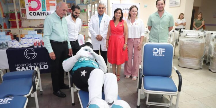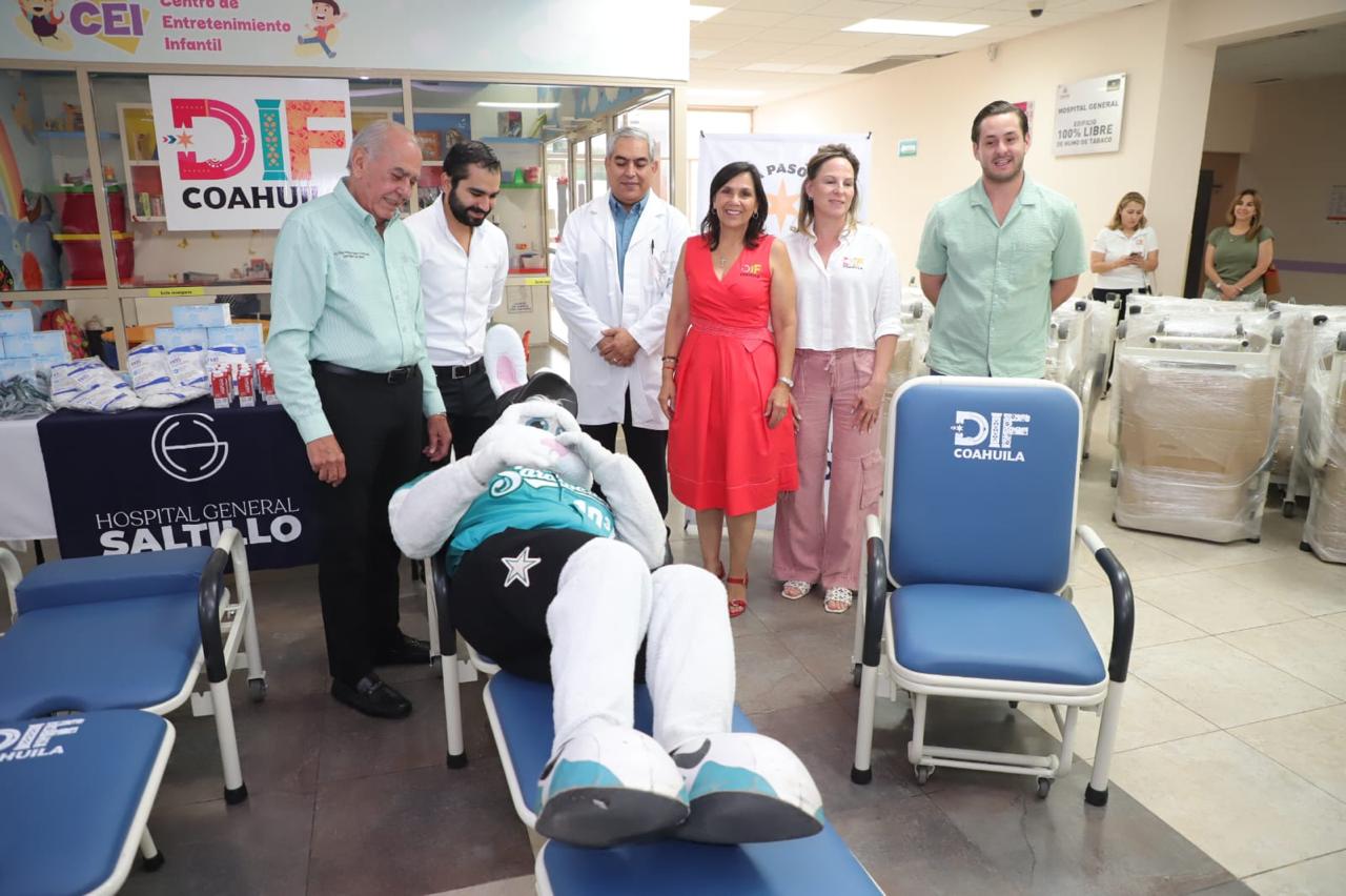 Con el propósito de fortalecer la atención a las familias que acompañan a sus pacientes en los hospitales, el DIF Coahuila llevó a cabo la entrega de sillas cama, además de material higiénico y suplementos alimenticios, al Hospital General de Saltillo.