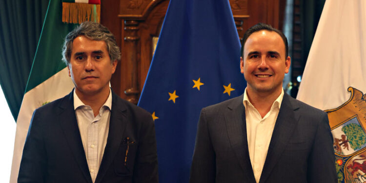 «Recibimos en Palacio de Gobierno al Embajador de la Unión Europea en México, Francisco André, con quien dialogamos sobre proyectos y acciones conjuntas. Seguiremos sumando esfuerzos en materia de economía, derechos humanos y turismo.