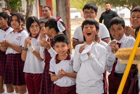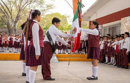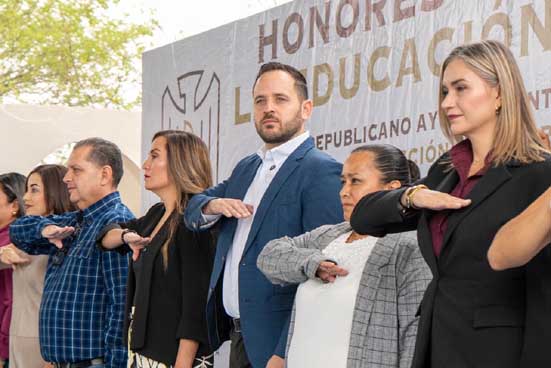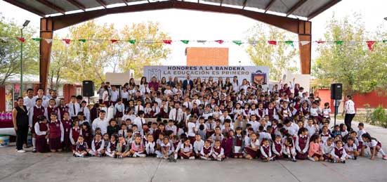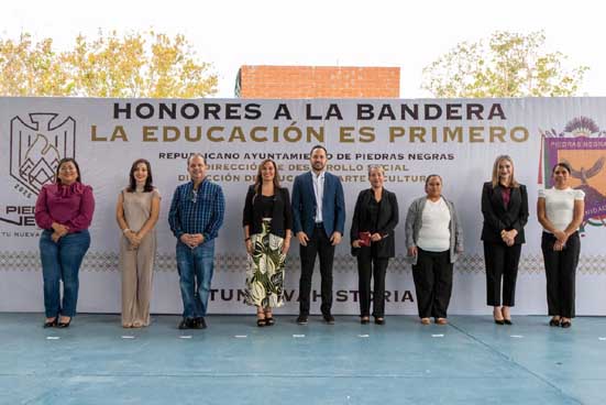 El alcalde Jacobo Rodríguez encabezó la ceremonia de Honores a la Bandera en la escuela primaria Dr. Armando Treviño Flores, ubicada en la colonia Doctores, donde refrendó el compromiso del Gobierno Municipal con la educación y el fortalecimiento de los valores cívicos entre las niñas y los niños de Piedras Negras.