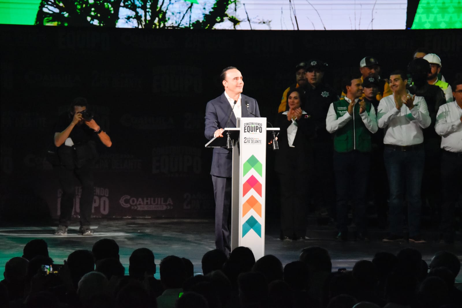El alcalde Jacobo Rodríguez González, acompañó este miércoles al gobernador Manolo Jiménez Salinas durante la presentación de su Segundo Informe de Gobierno, un ejercicio en el que se dieron a conocer los avances más relevantes en materia de seguridad, educación, salud y obras de infraestructura en todo el estado.
