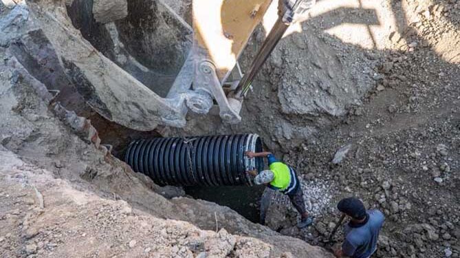 Piedras Negras, Coah. [ABC COAHUILA] – 12 de agosto de 2025 – El alcalde Jacobo Rodríguez supervisó los avances en la obra del colector ubicado frente a Labasa, donde se llevó a cabo la conexión del último tramo, concluyendo esta etapa en tiempo récord gracias al trabajo coordinado del personal de Obras Públicas.