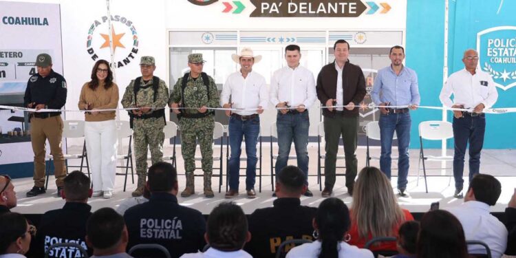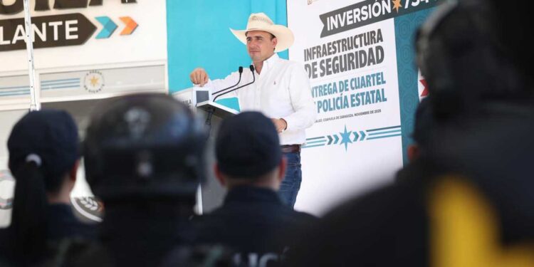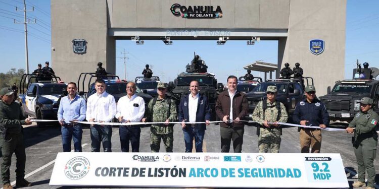 Hidalgo, Coah. – [ABC COAHUILA] – 14 de noviembre de 2025.- Como parte de su compromiso de fortalecer la seguridad y el blindaje de Coahuila, el gobernador Manolo Jiménez Salinas entregó el arco de seguridad carretero y un cuartel para la Policía Estatal en el municipio de Hidalgo, infraestructura en seguridad en la que se invirtieron 26.6 millones de pesos.