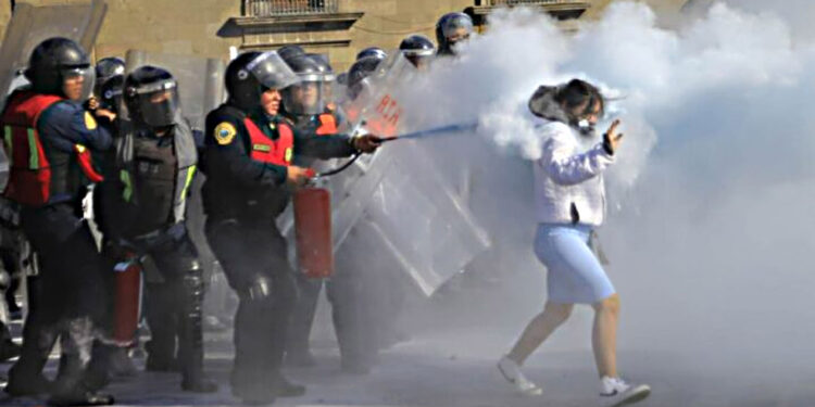 Lamentablemente, la imagen de la protesta pacífica se vio empañada al llegar al Zócalo capitalino. Un grupo minoritario de individuos, identificados por la prensa como el autodenominado «Bloque Negro» y encapuchados, protagonizó un enfrentamiento directo con las fuerzas policiales que resguardaban Palacio Nacional.