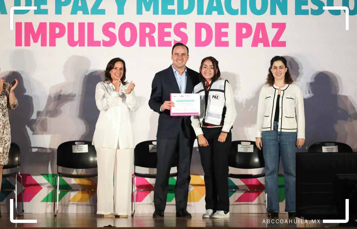 «Arrancamos en Arteaga el programa «Impulsores de Paz», una estrategia que va directo a las aulas, para que nuestras niñas, niños y jóvenes aprendan a resolver conflictos con diálogo, con respeto y con valores. Porque en Coahuila creemos que la paz se construye desde casa y se fortalece en la escuela, trabajando en equipo entre padres, maestros y gobierno. En Coahuila la paz se construye todos los días, desde todos los espacios», destacó el gobernador.