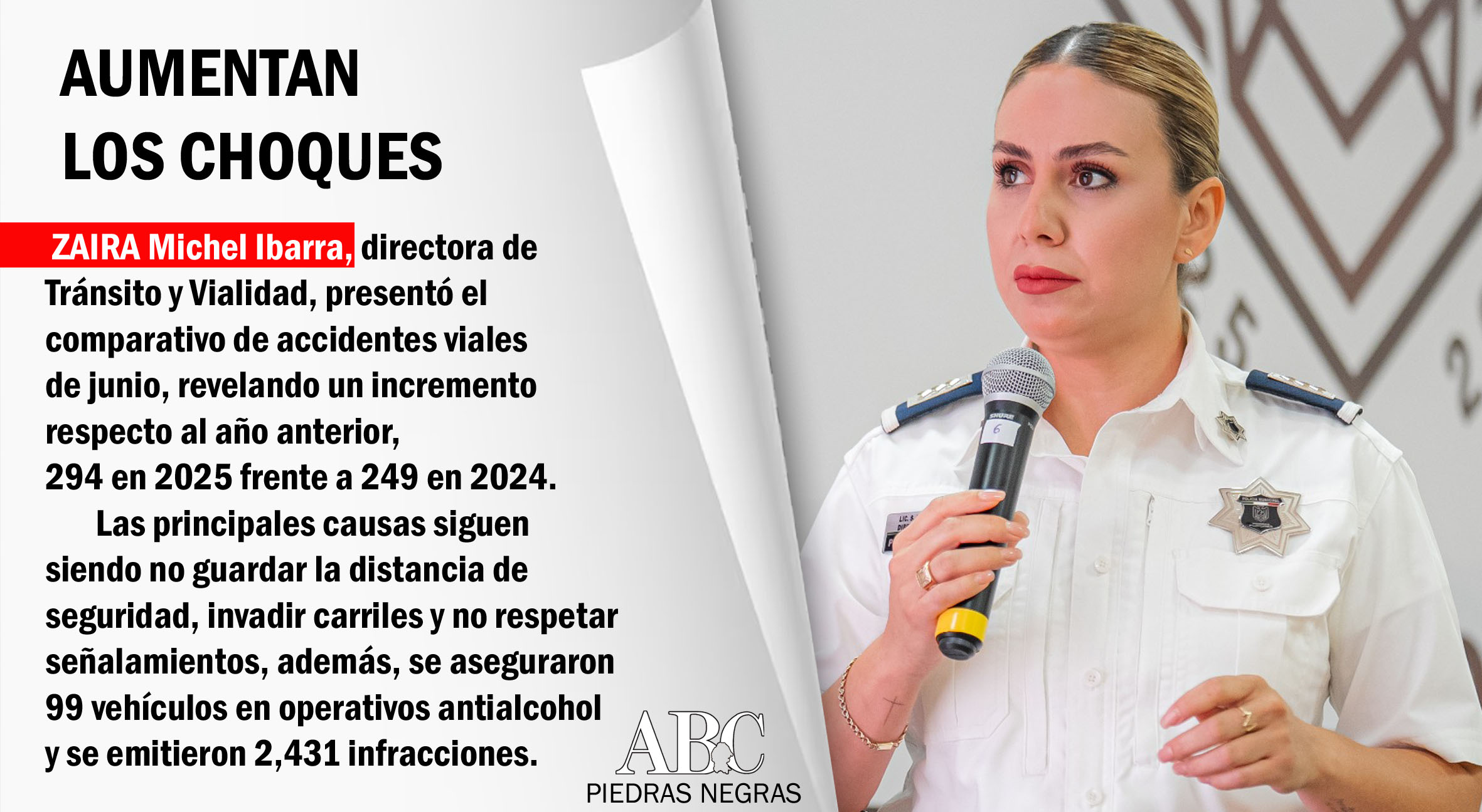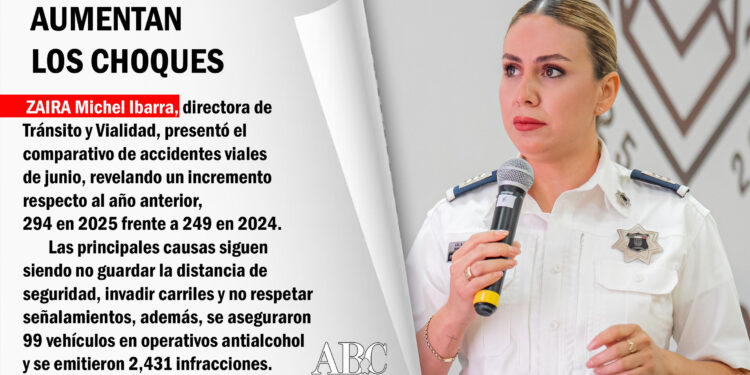 Por su parte, Zaira Michel Ibarra, directora de Tránsito y Vialidad, presentó el comparativo de accidentes viales de junio, revelando un incremento respecto al año anterior, 294 en 2025 frente a 249 en 2024. Las principales causas siguen siendo no guardar la distancia de seguridad, invadir carriles y no respetar señalamientos, además, se aseguraron 99 vehículos durante operativos antialcohol y se emitieron 2,431 infracciones.