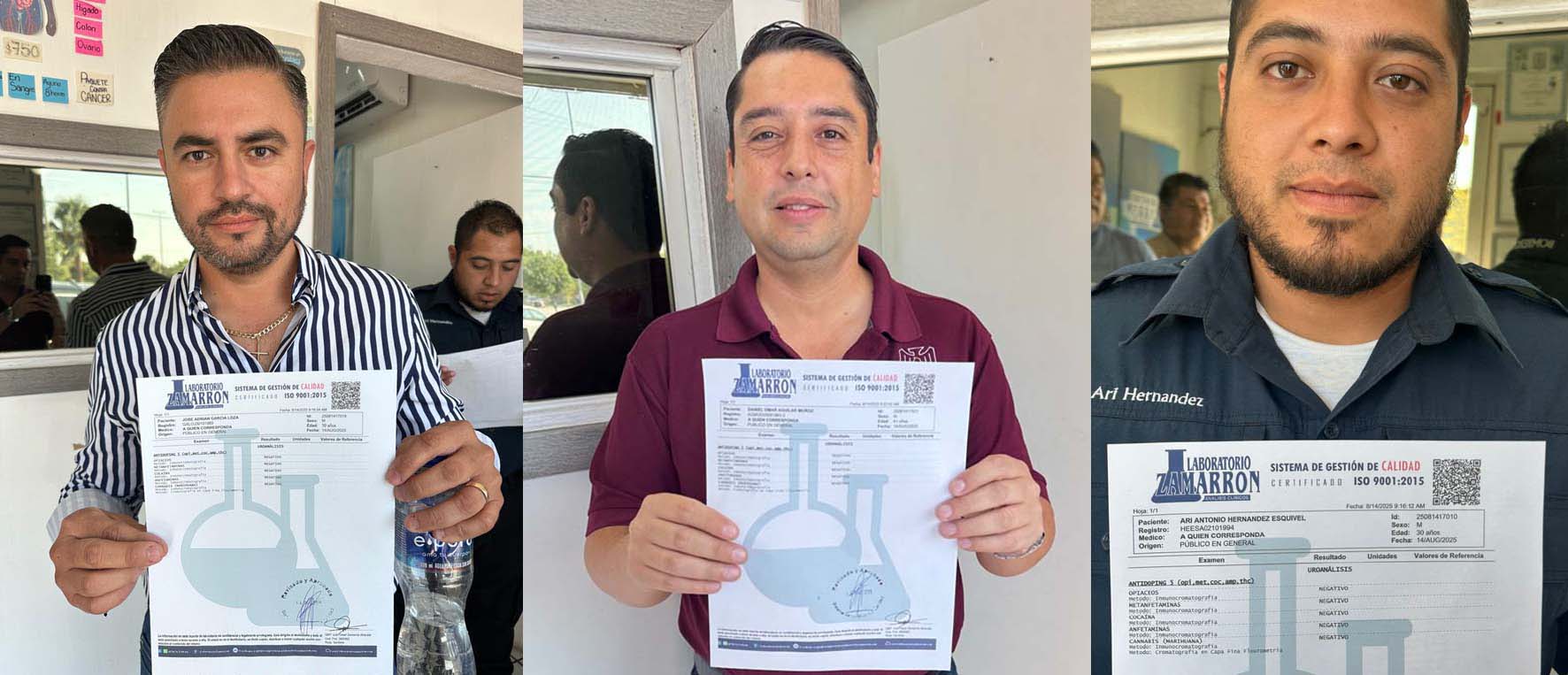 La prueba se llevó a cabo en las instalaciones del Laboratorio Zamarrón y tanto el alcalde como su equipo de trabajo obtuvieron resultados negativos en todas las sustancias analizadas, incluyendo cocaína, metanfetaminas y marihuana.