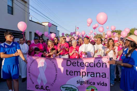 En el marco de las actividades de sensibilización sobre el cáncer de mama, se llevó a cabo la Caminata GAC “Todos Somos Ángeles”, evento organizado por el Grupo de Apoyo a Personas con Cáncer de Piedras Negras A.C. (GAC), con el propósito de rendir homenaje a quienes enfrentan esta enfermedad y fomentar la conciencia sobre la importancia de la detección oportuna.