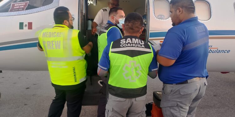 La Secretaría de Salud de Coahuila informa que, a través del Sistema de Atención Médica de Urgencias (SAMU), y en coordinación con el Centro de Regulador de Urgencias Médicas, se realizó con éxito el traslado en cuidados críticos de una paciente menor de edad con 28 por ciento de superficie corporal quemada (SCQ).